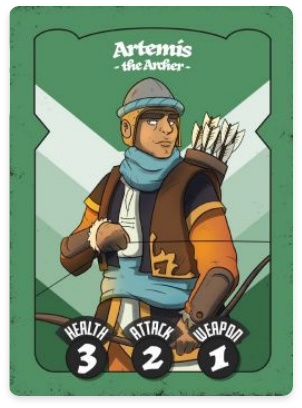Weapon cards can be purchased via the store or can be earned by landing on a tile that allows the player to spin the weapon wheel. Weapon cards are used to increase player attack power to be used when in battle.