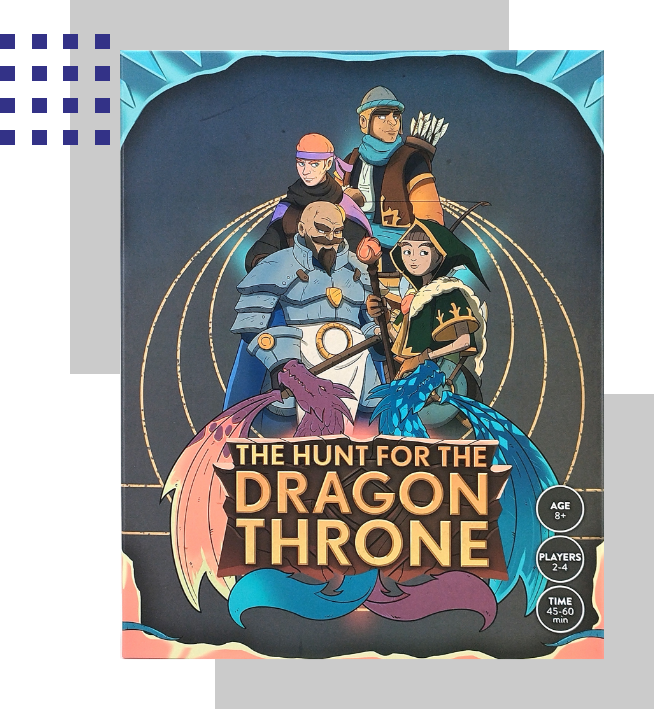 Welcome to the Hunt for the dragon throne, In this action packed 2-4 player board game you must battle your way out of the safe zone and into the wilderness! Start by choosing 1 of the 4 unique characters and see where the journey takes you with some magical twists and turns. As you progress you will get opportunities to gain loot such as plot cards, item cards, item cards, weapon cards, coins and additional health. Be wary as hidden loot may not always have the desired outcome and make sure to keep an eye out for those Dragons! Will the trials and ribulations get the best of you? Or will luck be in your favour?